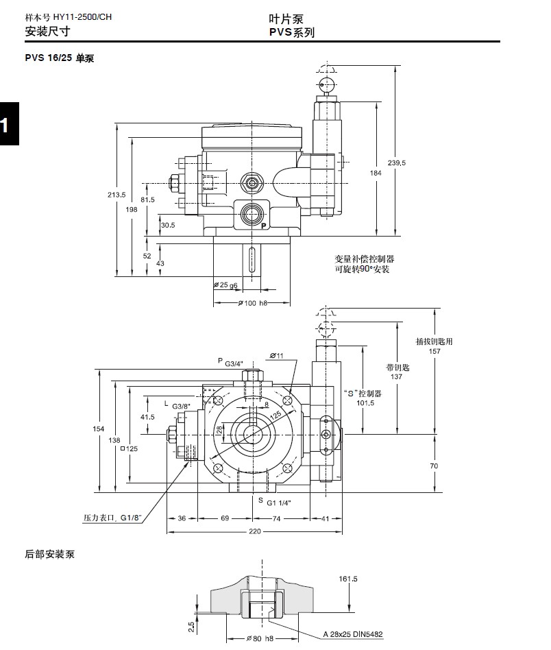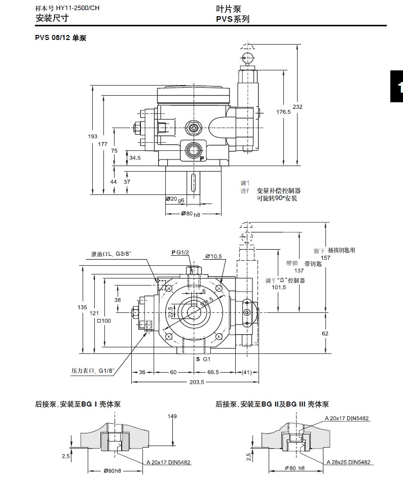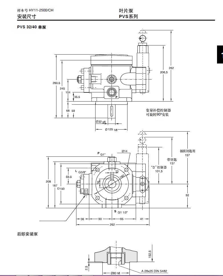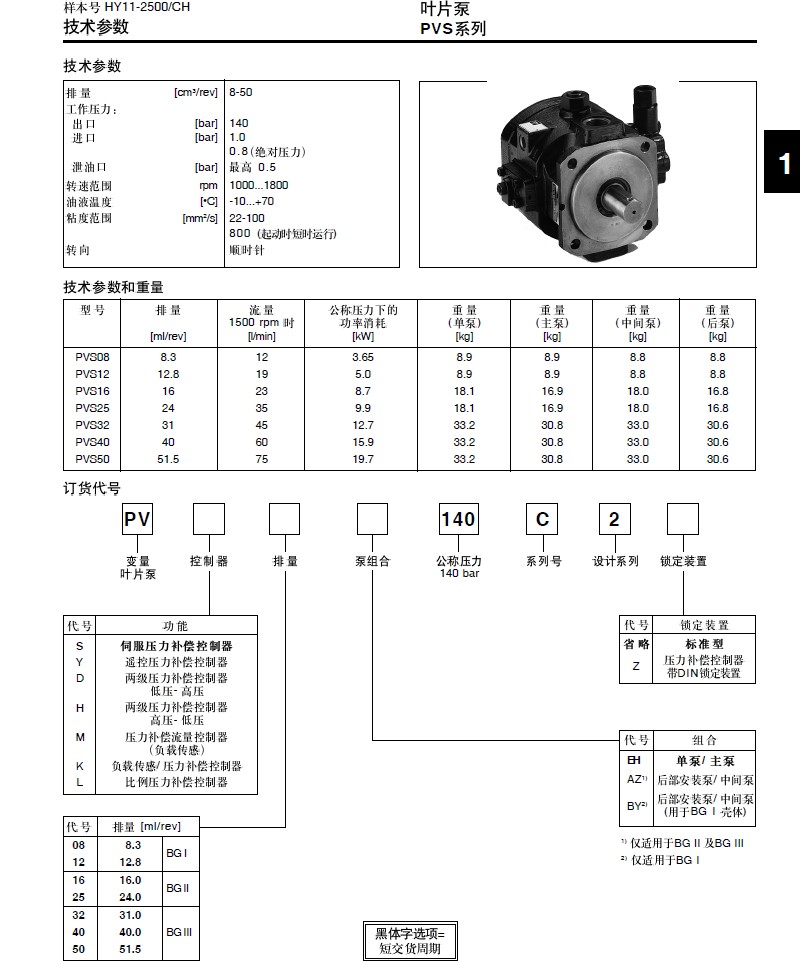 型号有:PVS08, PVS12,PVS16, PVS25, PVS32, PVS40, PVS50等。根据调节器功能不同,此系列变量叶片泵有PVS, PVY, PVD, PVH, PVM, PVK, PVL等。