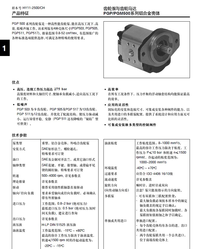 Parker PGP-PGM500系列铝合金壳体齿轮泵与齿轮马达