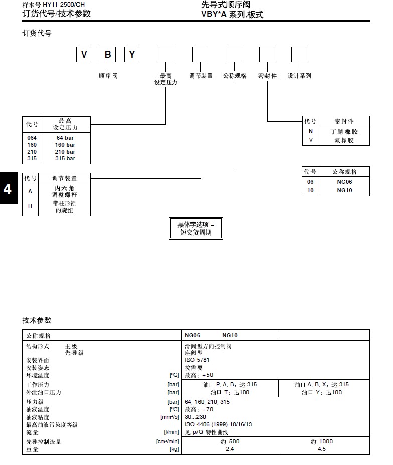 Parker VBY*A和S系列先导式顺序阀