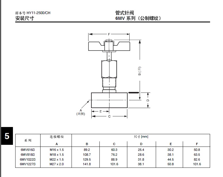 MV系列针阀可以选择30度-锥面、V形切口或矩形切口的阀芯。节流口的形状影响流量调节的精度,其与压力和粘度有关。针状阀芯为不锈钢并且在阀筒内形成环状间隙。可以选择钢质或黄铜阀体以及管式安装或面板安装。