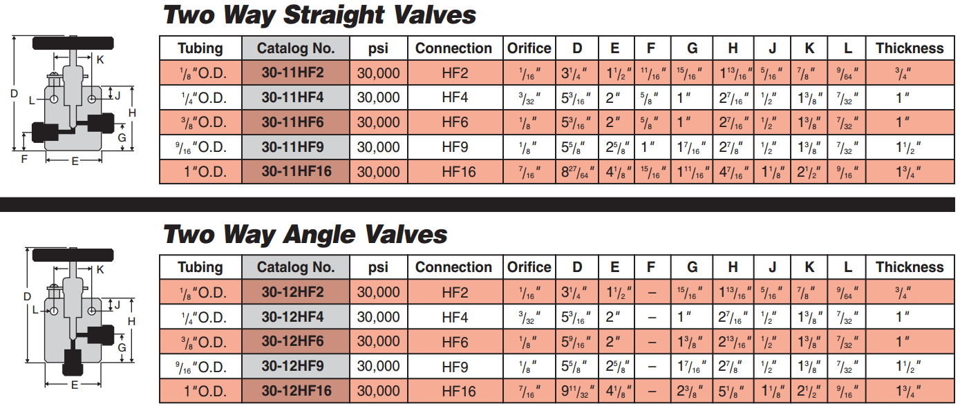 30,000 psi High Pressure Valves