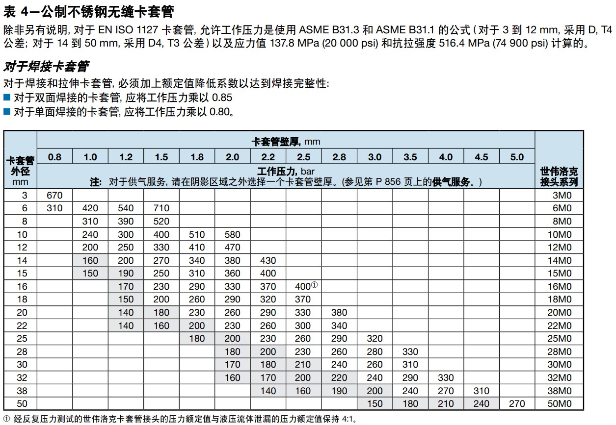 卡套管的温度、压力额定值